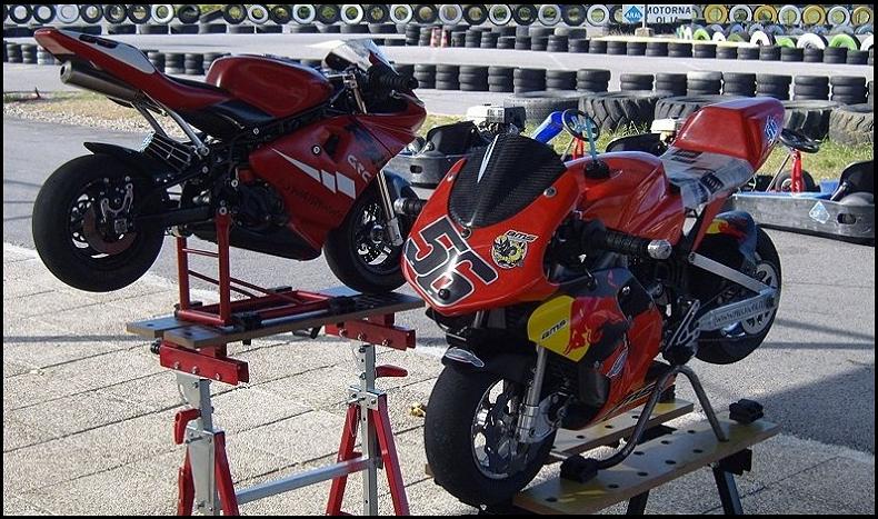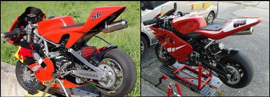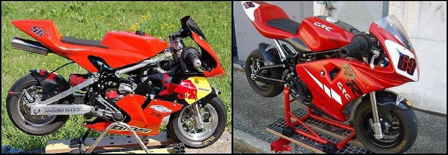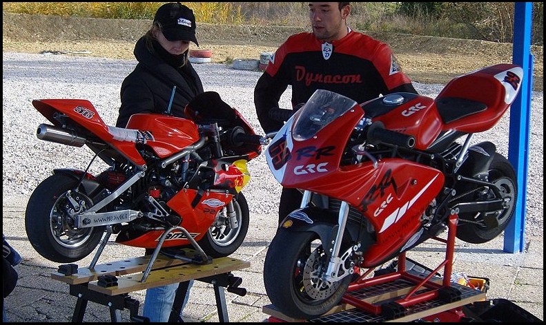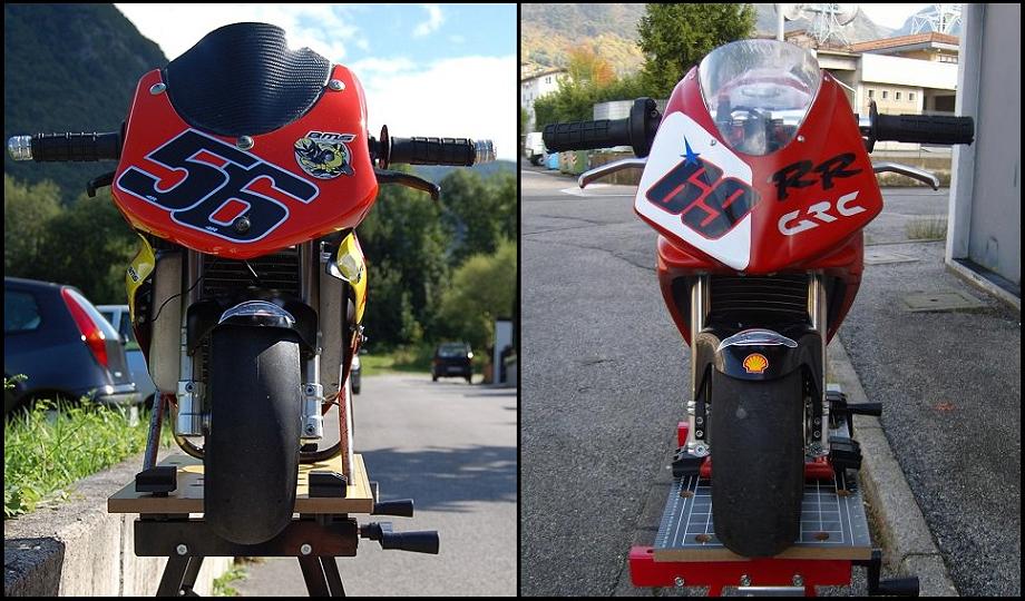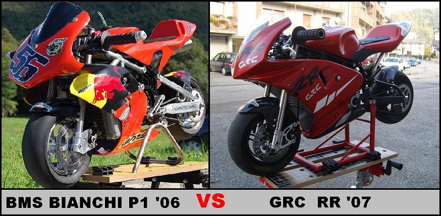 Detto questo andiamo ad analizzare le due MidiMoto prese in esame, la prima č una Bianchi Motor Sport P1 del 2006 (abbreviazione BMS) costruita e sviluppata in Francia BMS Pocketbike , la seconda č una GRC RR del 2007 questa costruita in Italia GRC Moto; entrambe le midi sono fornite di un motore BZM 40cc con allestimento prontogara e sono in grado di sviluppare una potenza di 12/13 CV alla ruota, due belle bestioline insomma...